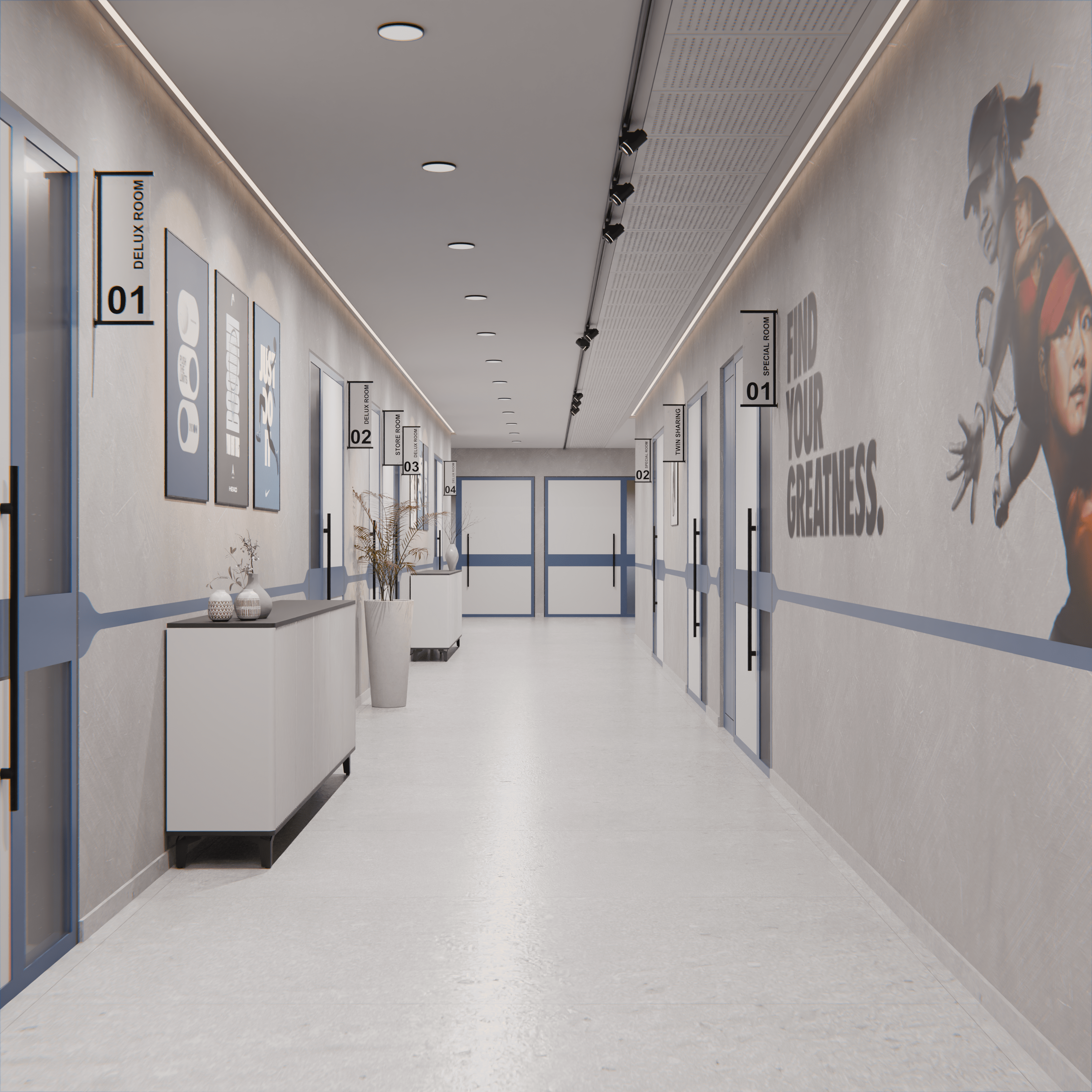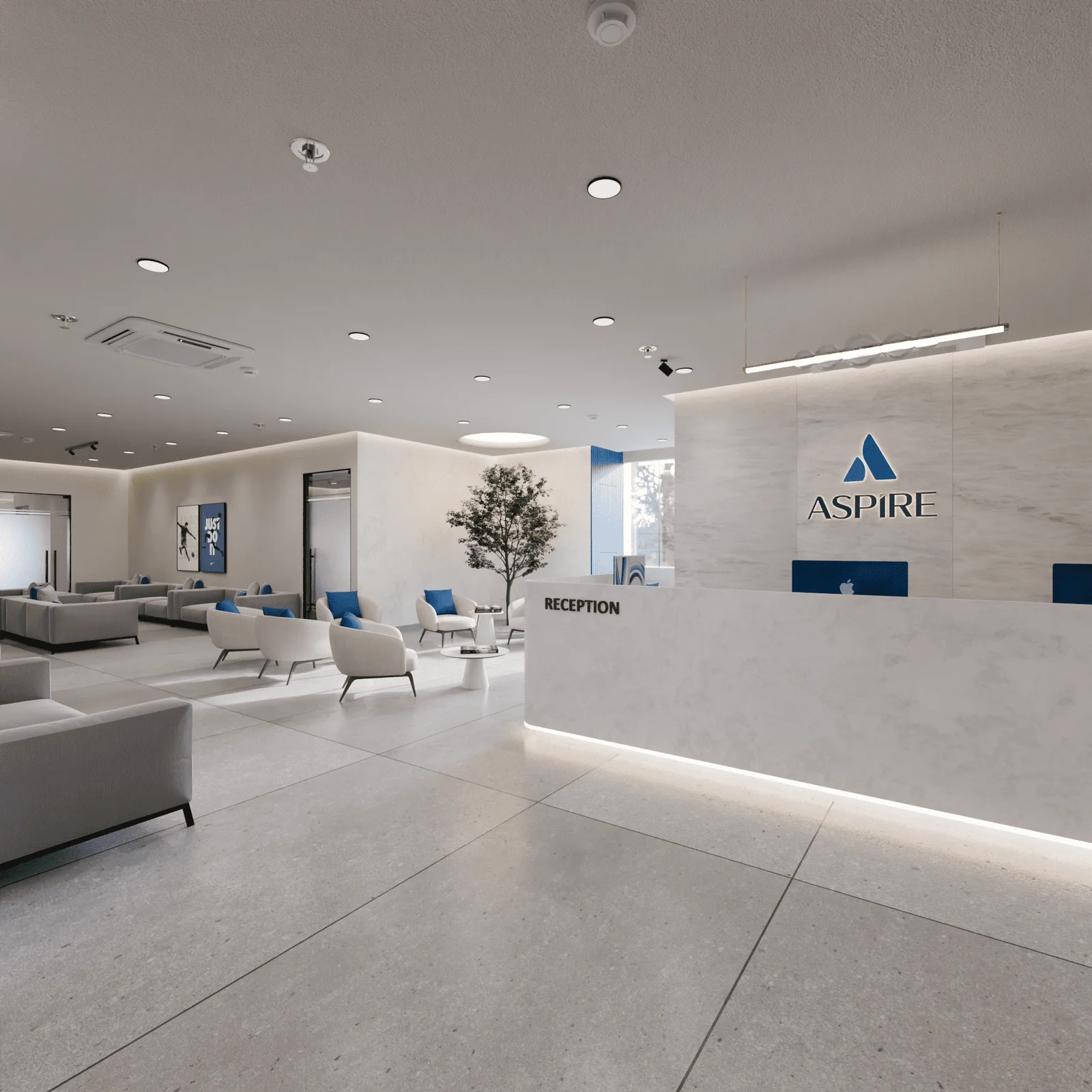 This project for Aspire Hospital centered on transforming the crucial reception and entry areas into spaces that immediately convey two core principles: unwavering trust and soothing professionalism. Recognising that the hospital environment can often cause anxiety, our design philosophy was to create a calming and welcoming first impression.