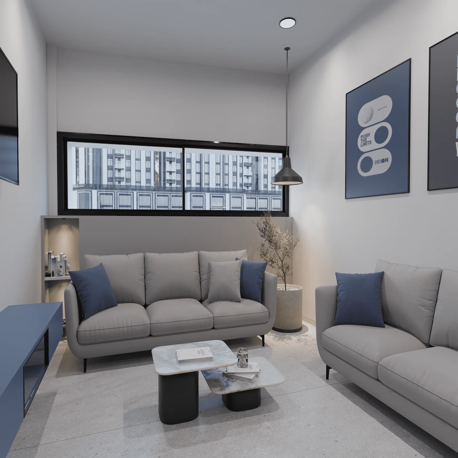 A central feature is the inclusion of a prominent, well-placed indoor tree and plants. This biophilic design element connects the indoor space to nature, significantly reducing stress and promoting a feeling of wellness.