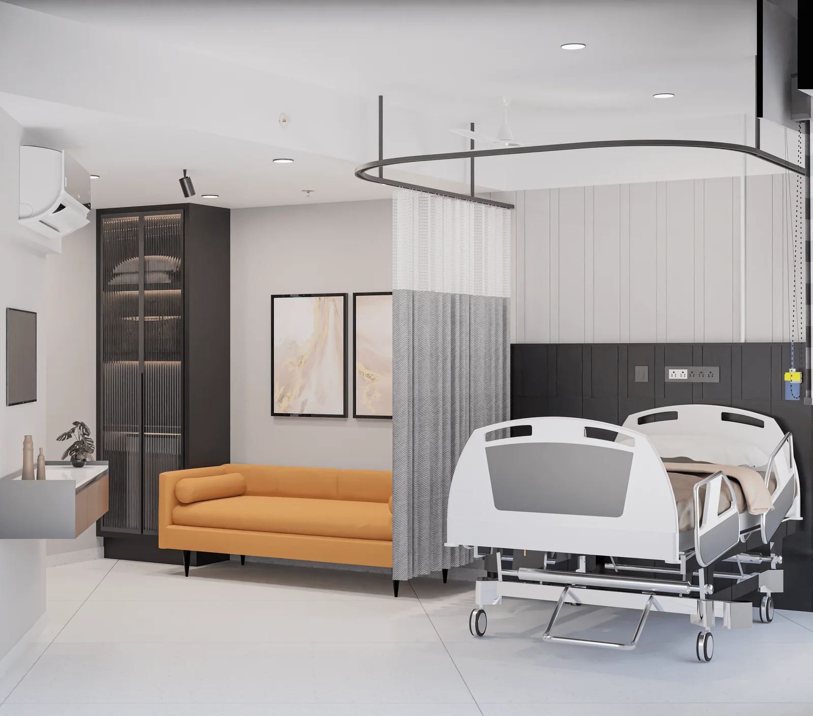 This hospital project seamlessly combines modern design with state-of-the-art medical technology. Its interior spaces are carefully crafted to enhance patient outcomes, optimize healthcare operations, and foster a healing, supportive environment for both patients and staff. The facility accommodates 12 beds within a built-up area of 6,400 sq ft.