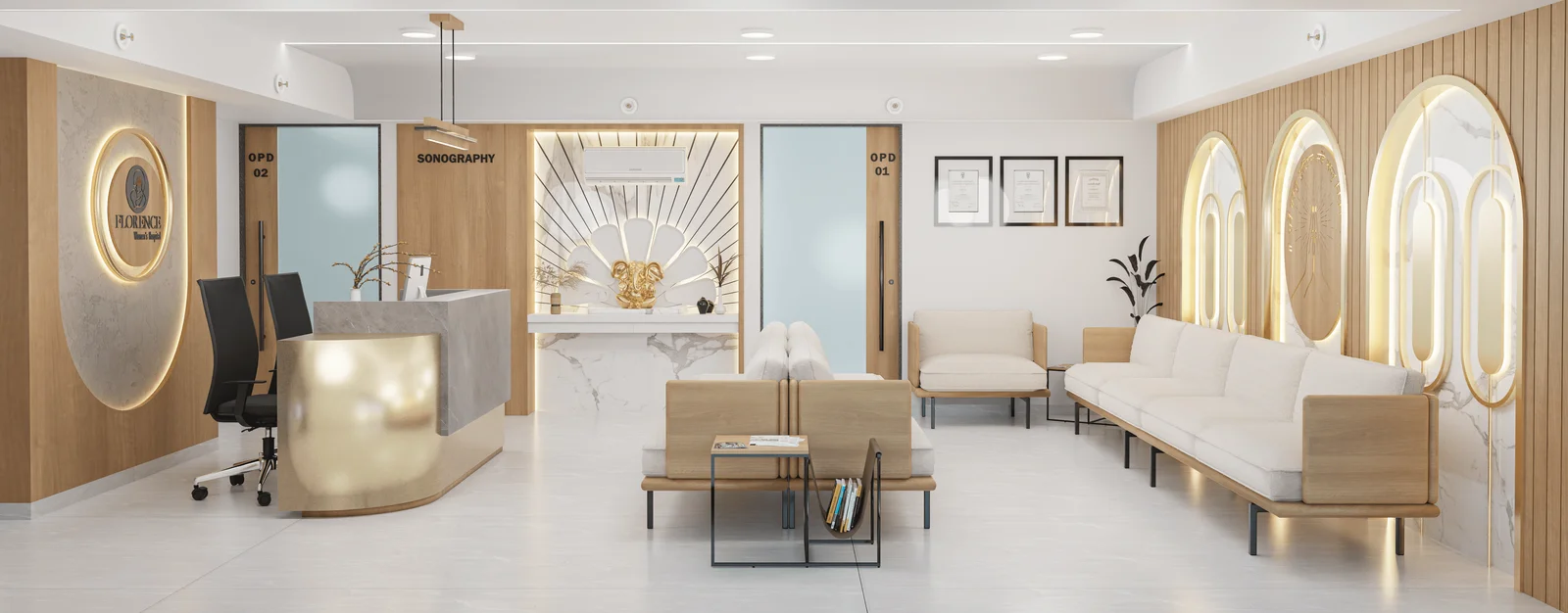 The interiors of the Florence Women’s Hospital are a stunning amalgamation of premium design aesthetics and thoughtful functionality, creating a warm and inviting environment for patients and visitors alike. This project demonstrates the power of interior design to transform a clinical setting into a space that exudes sophistication while fostering comfort and tranquility.