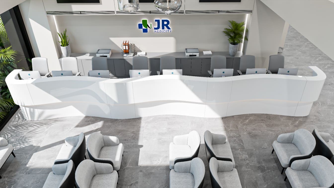 This healthcare facility embraces simplicity as its core design language. A rhythmic interplay of vertical fins and seamless glazing creates a structured yet fluid façade, expressing trust, precision, and forward-thinking medical care from the very first glance.