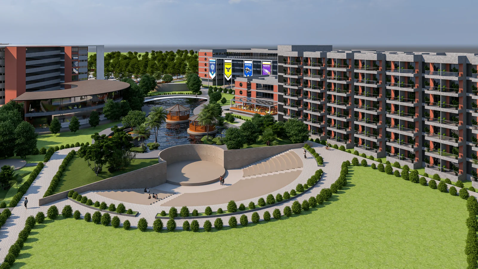 Designed with the same architectural care as the rest of the campus, the servant quarters feature a modern, integrated aesthetic with balconies and windows, ensuring a respectful and cohesive living environment for all residents