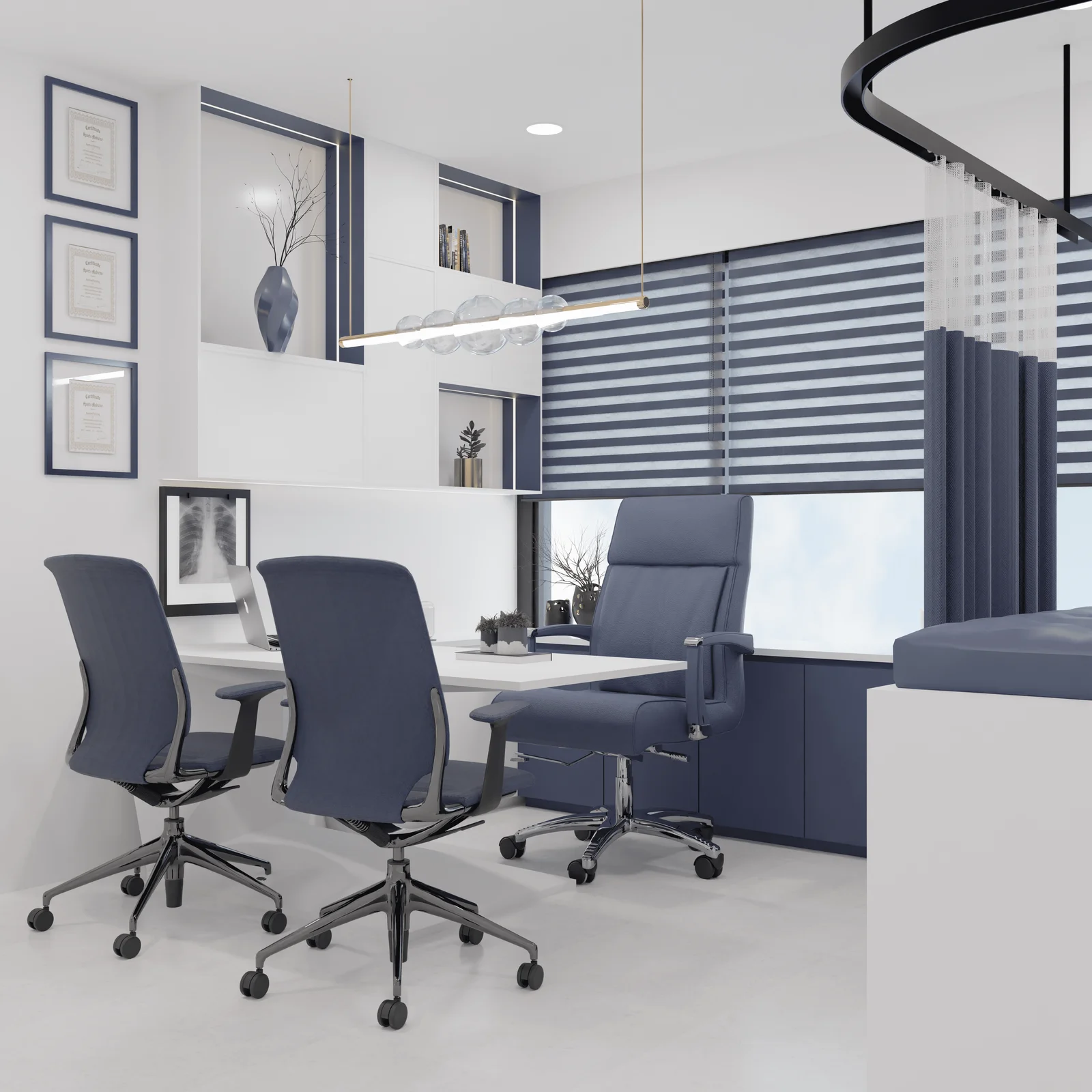 This design for a modern clinic emphasizes a clean and calming aesthetic. The color palette and materials have been carefully selected to create a welcoming and reassuring environment for patients. The layout prioritizes efficiency and patient flow, ensuring a smooth and comfortable experience.