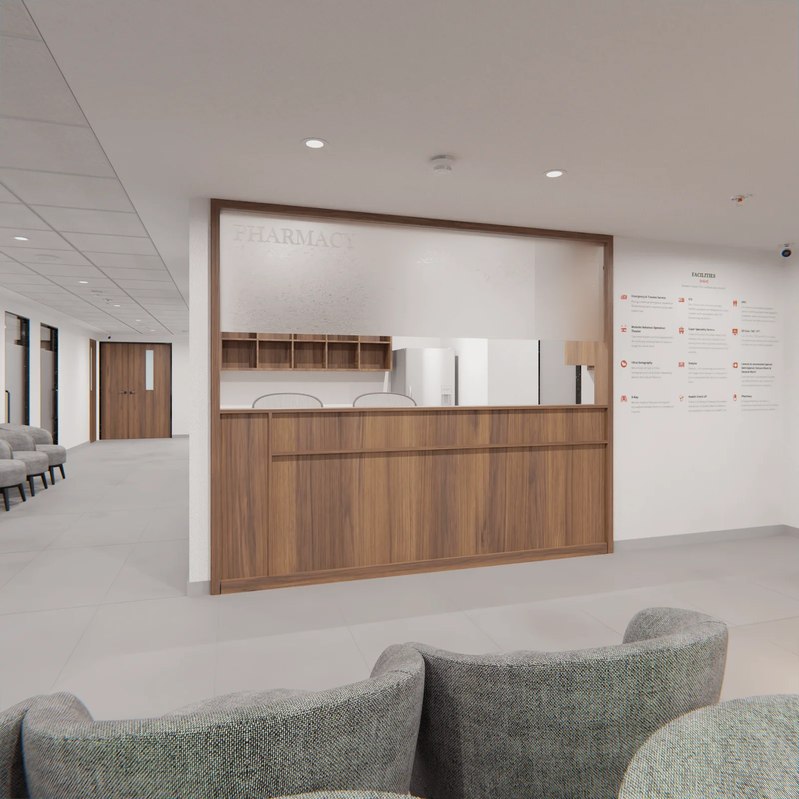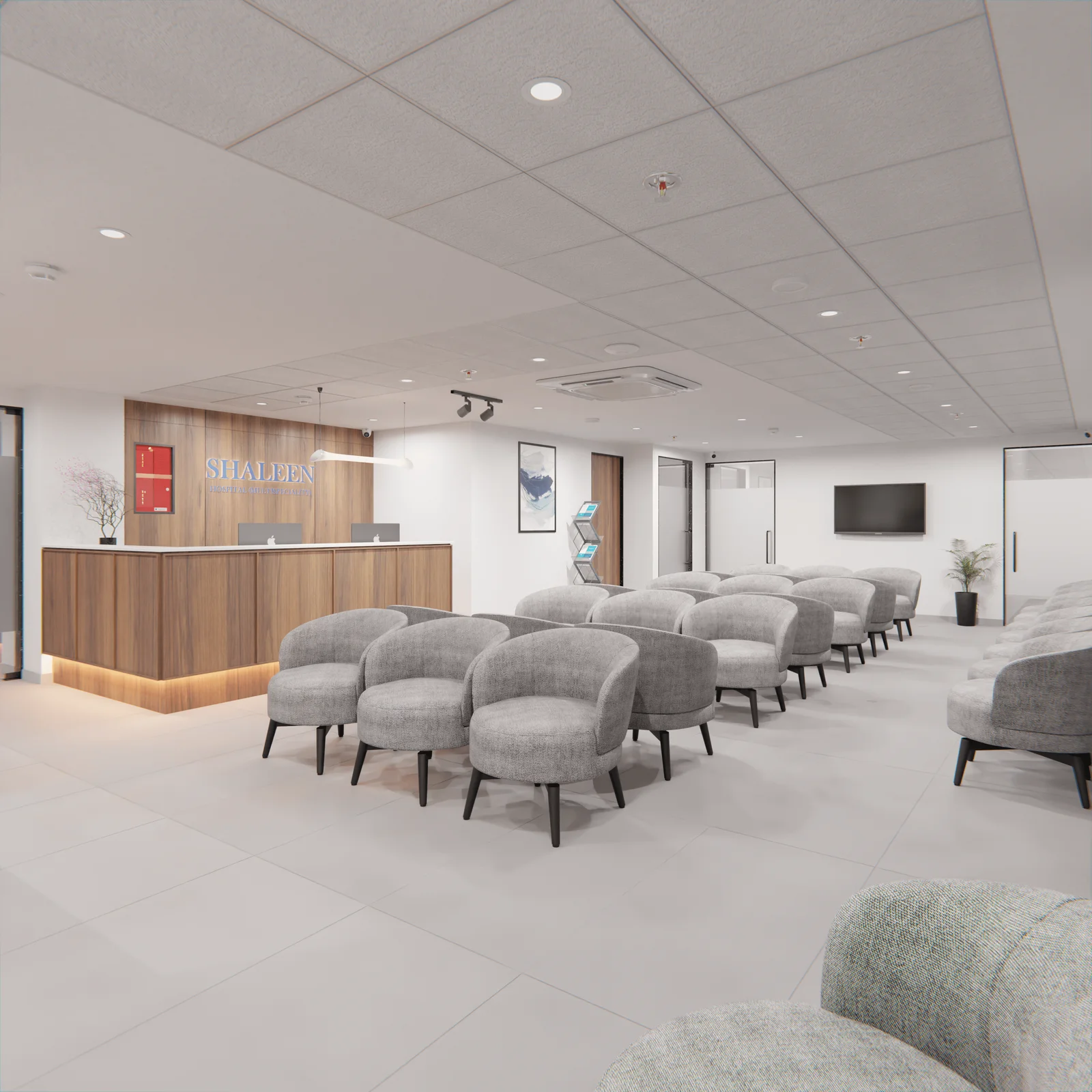 Our vision was to redefine the outpatient consulting experience at Shaleen Hospital through thoughtfully curated interiors that combine clinical functionality with elegant design. Every detail reflects a harmony between healing spaces and high-end aesthetics—where patients feel cared for the moment they step in.